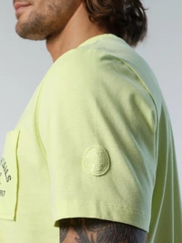 Obvezna oprema za korištenje izvan dužnosti ili s laganim tragom. Poduzimajući pozitivne korake za planet u skladu s našom predanošću zaštiti okoliša, ova muška majica s okruglim izrezom izrađena je od mješavine organskog i recikliranog pamuka. Džep na prsima ukrašen je logotipom koji slavi godinu rođenja brenda, dok zakrpa od gabardina u tonu na rukavu daje prepoznatljiv dodir.