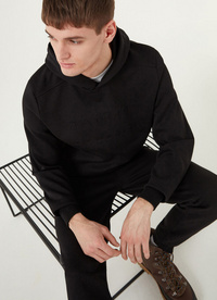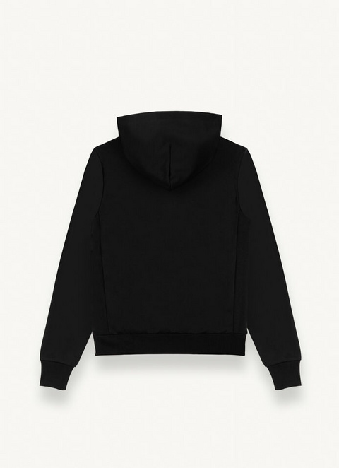 Mekana kapuljača od mekog pamuka. Maxi logo na prsima, u istoj tkanini, izrađen je posebnim tehnikama pritiska koje daju reljefni/izgubljeni efekt. Rebrasto pletivo na bokovima čini odjeću udobnijom.