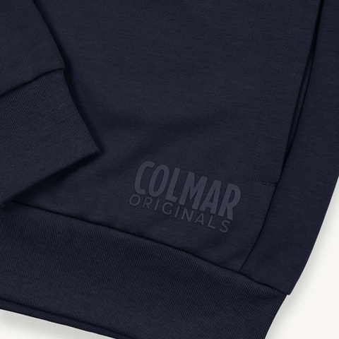 Full zipped man's sweatshirt made from soft mixed cotton interlock with regular fit. Cuffs,bottom and neck are made from knitted ribs matching tone with main fabric and the 3D COLMAR ORIGINALS writing is printed under the left pocket. A label with the brand name is inserted in the right side of the item