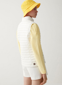 Ženska jakna bez rukava, podstavljena laganim prirodnim paperjem i izrađena od izuzetno lagane reciklirane tkanine s vodoodbojnom obradom. Tanak kroj dodaje dodatni dašak ženstvenosti ovom legendarnom Colmar Originals modelu od 100 g, koji dolazi u novim proljetnim nijansama.