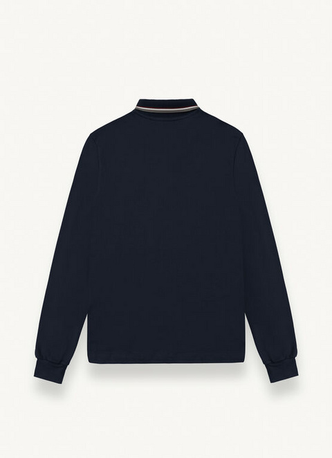 Muški pulover u mekom rastezljivom pike stilu. Klasična polo majica dugih rukava, koju karakterizira prisutnost boja brenda na prugama na vratu i na gumbima. Udobna i praktična svestrana majica kratkih rukava koja se može kombinirati uz svaki look: kao glavna karakteristika u jesen ili za nošenje zimi ispod trenirke ili pulovera.