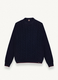 Men’s pullover in a soft, yarn-dyed wool and cashmere-blend yarn. Versatile with classic allure, this crew-neck model features a cable knit on the front embellished by contrasting-coloured stripes in the same hues as the logo. A go-to garment for pairing with urban or sporty outfits.