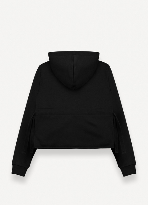 Ženska majica s kapuljačom izrađena od brušene mješavine pamuka. Ovaj odjevni predmet ima sportski izgled i urbani stil, naglašen trakama za prilagodbu širine struka te malim bočnim prorezima. Svestran komad s rebrasto pletenim manžetama i praktičnim bočnim džepovima. Kombinirajte ga s trenirkama iz kolekcije za cjelokupni sportski izgled.