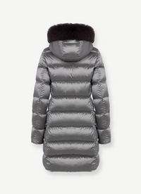 Ženska jakna srednje dužine s kapuljačom, izrađena od 100% reciklirane tkanine s efektom duge i vodoodbojnom završnicom. Podstava od prirodnog perja. Obrub kapuljače od umjetnog krzna dodaje trendovski štih ovoj zimskoj sezoni. Lagano stegnuti struk naglašava siluetu u savršenom Colmar Originals stilu.