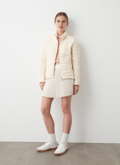 Women's jacket made from soft, super-fine, 20 denier microfibre fabric with a water-repellent treatment. The irregular wave quilting makes the garment glamorous and extremely feminine.