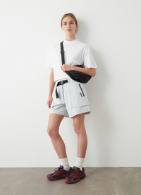 Women's shorts made of recycled nylon high-tech fabric (85%) with a large percentage of elastomer (15%) which makes them particularly comfortable. These shorts boast an unusual look with their large bellow pockets with double openings. The waist, with adjustable belt and maxi-loops on the sides, makes this garment comfortable and functional. The eco-friendly water-repellent treatment ensures maximum comfort so you can tackle any situation on even the most humid days. Thanks to the partially recycled fabric and eco-friendly treatment, it is part of the Colmar Green Path project, which aims to protect the environment as much as possible.