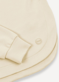 Ženska ohlapna jopica, izdelana iz svilnato mehkega bombaža/modal. Ženstven kos z okroglim izrezom, ohlapnim krojem in zaobljenim robom, ki se razlikuje od bolj klasičnih modelov.