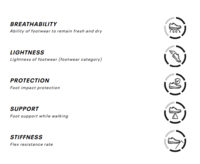 Zgornji dio od 1,6 mm semiš kože. Težina 460 g