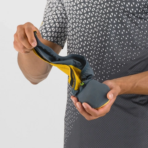 Lavaredo Vest združuje vse značilnosti naše jakne Lot Evo v tehničnom prsluku, dizajniranom za trail trčanje, ali savršenom i za planinarenje i brdski biciklizam. To je onaj komad opreme koji oblačite kada u planinama zapuše hladan vjetar – lagana i brza zaštita koja vas štiti od iznenadnih promjena temperature na velikim visinama. Izuzetno lagan i prozračan, prsluk teži samo 90 grama te se zahvaljujući ugrađenoj vrećici za spremanje lako posprema. U ruksaku ili džepu kratkih hlača zauzima jednako malo mjesta kao energetska pločica. Kada ga obučete, učinkovito štiti prsa i leđa, osobito tijekom trčanja bez ruksaka, dok perforirana tkanina na stražnjoj strani omogućuje izvrsnu prozračnost. Elastičnost materijala osigurava brzo i udobno oblačenje, čak i preko trail ruksaka. Idealan izbor za treninge u proljetnim i jesenskim mjesecima, jer zahvaljujući panelima od 117 g tkanine Sensitive® Plus nudi izvrsno prianjanje. Praktičan, lagan i uvijek pri ruci – spreman za sve uvjete.