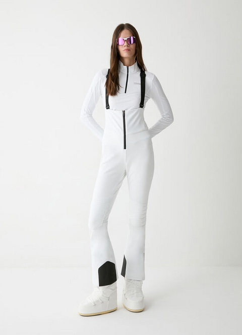 Ženske smučarske hlače izrađene od super rastezljivog softshell materijala s membranom koja osigurava vodootpornost od 5.000 mm i vodoodbojni završni sloj. Unutarnja strana od mekanog i toplog flisa pruža udobnost i toplinu. Hlače visokog struka, izrađene od tehničkog, visokoučinkovitog materijala, namijenjene najzahtjevnijim skijašicama koje žele ostati elegantne na skijaškim stazama.