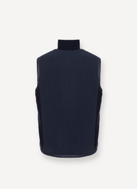 Moški brezrokavnik iz najlonske tkanine z vodoodbojno obdelavo in delnim polnilom z učinkom puha. Popoln hibridni kos za prehodna obdobja, ki združuje klasični prešiti najlon s toplim volnenim pletenjem za stranice in mehkim bombažnim flisom za hrbtni del. Nenavaden in funkcionalen kos, idealen za prve jesenske dni.