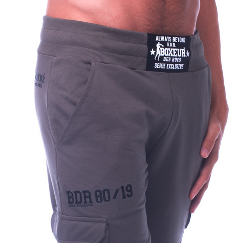 Moške BOXEUR DES RUES cargo kratke hlače iz kompaktnega bombažnega materiala. Posebnost so stranski prostorni žepi na obeh straneh hlačnice. Značilen Boxeur logotip je tu minimalističen na desni strani hlačnice in na zadnji strani v zgornjem delu sedala. Pas je širok, elastičen in ima regulacijsko vrvico. Poseben detajl na pasu spredaj je črn insert z belim Boxeur logotipom.