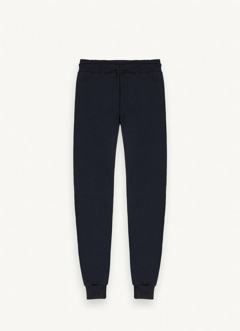 Ženske hlače iz mehke bombažne mešanice iz flisa. Rebra v pasu in na spodnjem delu se ujemajo z osnovno tkanino. To oblačilo je izrazito ženstveno zaradi lurexovega traku, ki je nameščen ob straneh nog.