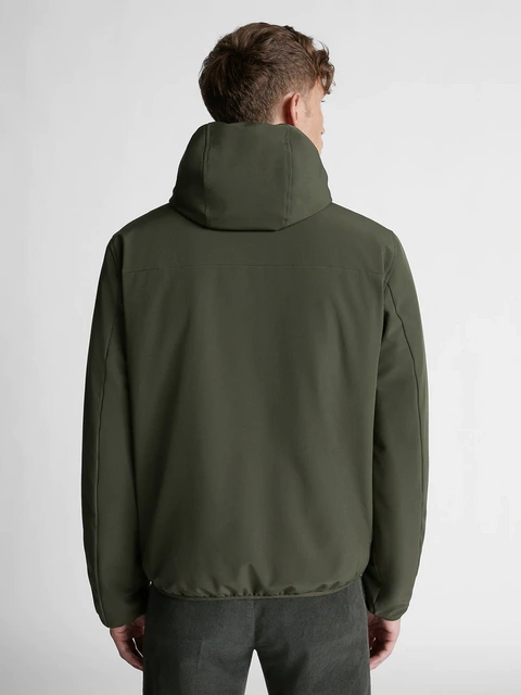 Jakna iz recikliranega softshella, dopolnjena s kapuco, z žepi z zadrgo in zapenjanjem z zadrgo. Logotip North Sails na rokavu.