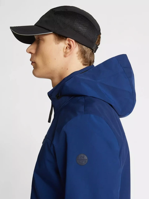 • Stoječ ovratnik s skrito kapuco, nastavljive manšete in zadrga zagotavljajo popolno funkcionalnost.