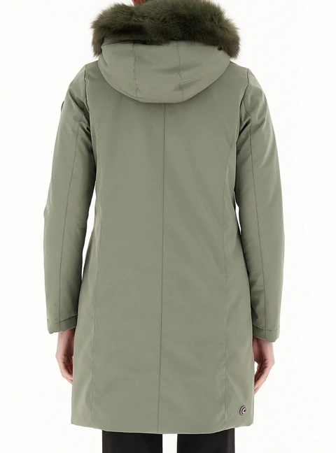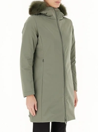 Vodoodporna jakna, kapuca z odstranljivim robom iz pravega krzna, oblazinjena in prešita notranjost, sprednje zapiranje z dvosmerno zadrgo, dva sprednja žepa s skrito zadrgo, logotip prišit na ramenu.