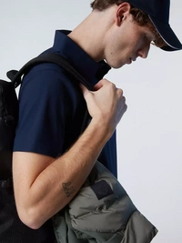 Poletna nuja z lažjim odtisom in našo prepoznavno pripravljenostjo na avanturo. Ta polo majica s kratkimi rokavi je izdelana iz tehničnega raztegljivega jerseyja, ki vsebuje recikliran poliamid za zmanjšanje količine odpadkov, ki gredo na odlagališče. Opremljen z lasersko izrezanimi robovi za elegantno estetiko in kvadratnim logotipom na prsih.