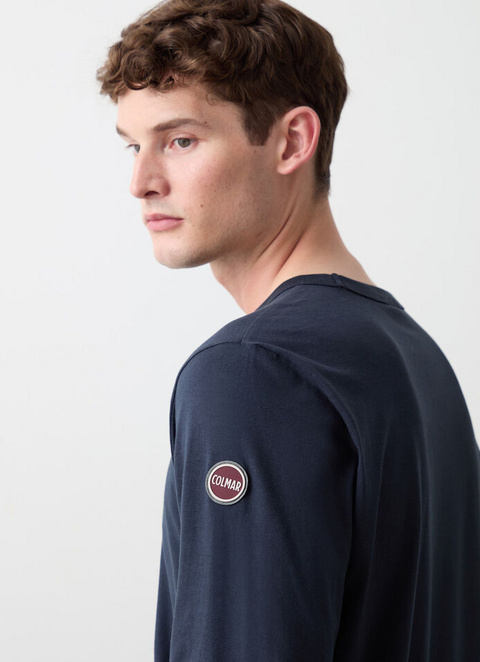 Moški pulover z okroglim ovratnikom iz 100 % mehke bombažne džersije tkanine. Ta dolgi rokav v tonalnem rebrastem ovratniku je preprost. Nove barvne odtenke je mogoče kombinirati z oblačili iz kolekcije Colmar Originals FW24.