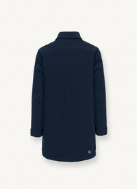 Moški puhast plašč, izdelan iz mehkega poliestrskega gabardina s učinkom volne in laminiranim hrbtnim delom, ki zagotavlja vodni stolpec zmogljivosti 5.000 mm. Opremljen je s vodoodporno obdelavo in naravnim polnilom. Povratek klasičnega plašča, ki je postal bolj športen z zategovalnimi zankami za prilagajanje na vratu in rokavih. Zagotavlja večjo zaščito pred mrazom.