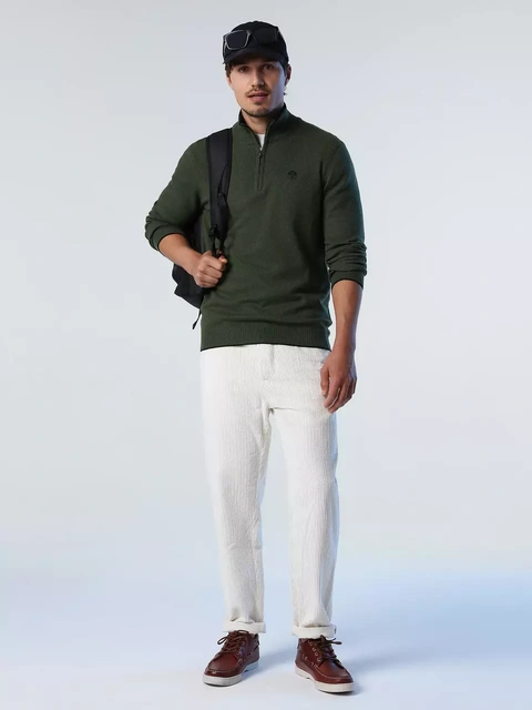 Reševanje planeta je etična izbira sloga. Ta pulover z visokim vratom in zapiranjem na polovični zadrgi je izdelan iz reciklirane mešanice volne, kašmirja in viskoze: okolju prijazna izbira, ki izraža spoštovanje planeta in zavezanost podjetju North Sails k trajnostni rabi virov.