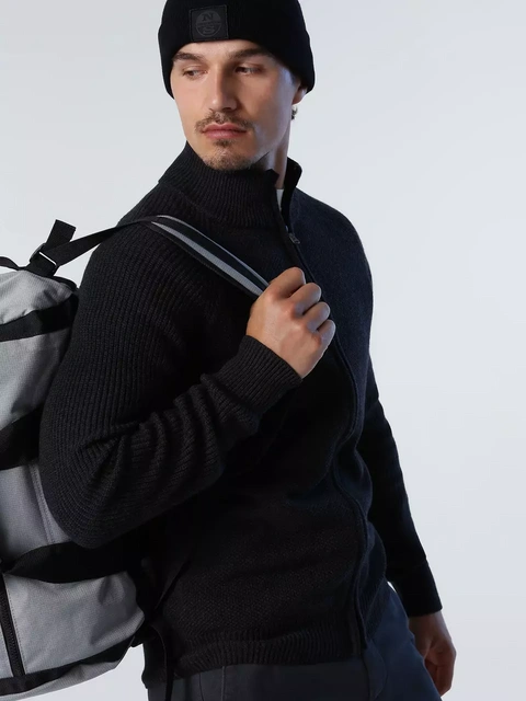 Vsestranski slog, ki se brez težav kombinira s hlačami ali kavbojkami, odvisno od priložnosti: to jopico odlikujeta praktična zadrga in oprijemljivo tkanje, ki ustvarja prefinjen grafični učinek. Njena konstrukcija iz mešanice organskega bombaža in volne je certificirana kot izdelana v skladu z družbeno odgovornimi in okolju prijaznimi načeli brez uporabe škodljivih snovi.