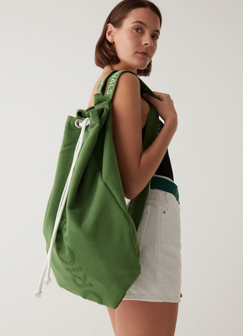 Nahrbtnik iz frotirja s personaliziranimi naramnicami Colmar Originals. Nahrbtnik se lahko spremeni v brisačo za na plažo, zaradi česar je popoln za tiste, ki iščejo praktičnost na plaži ali ob bazenu.