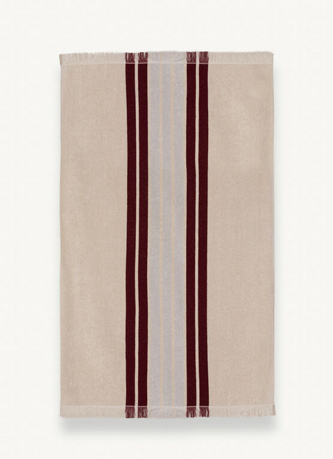 100 % bombažna brisača s črtami, barvanimi s prejo, z resicami na obeh koncih in izvezenim logotipom Colmar Originals na dnu. Idealen sopotnik za na morje ali bazen.