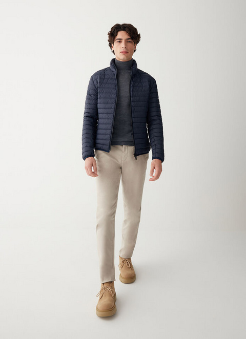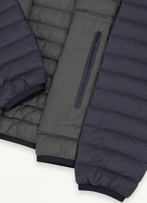 Moška jakna, oblazinjena z lahkim naravnim puhom in izdelana iz izjemno lahke, neprozorne in reciklirane tkanine. Preprost model, vendar zelo praktičen in udoben zaradi toplega oblazinjenega ovratnika. Ikoničen kos iz kolekcije Colmar Originals je oblečen v nove odtenke, da bi lahko jesensko sezono preživeli z vsem slogom 100-gramskega puha.