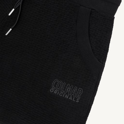Ženske kratke hlače Colmar iz žakard pletenine. Robovi žepov so zaključeni v šivu, prav tako pas, ki se prilagaja z vrvico. Logotip COLMAR ORIGINALS, ki se ujema z barvo glavne tkanine, je nameščen pod levim žepom.