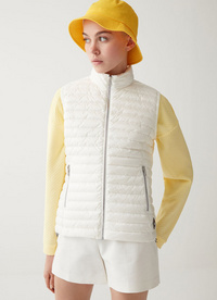 Ženska jakna brez rokavov, oblazinjena z lahkim naravnim puhom in izdelana iz izjemno lahke reciklirane tkanine z vodoodbojno obdelavo. Ozki kroj doda dodaten pridih ženstvenosti temu ikoničnemu 100 g modelu Colmar Originals, ki je na voljo v novih pomladnih odtenkih.