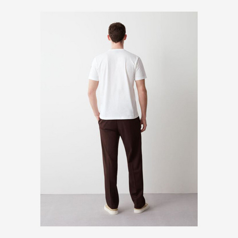 Moška srajca z okroglim izrezom iz mehkega bombažnega džersija. Čista in preprosta, ta enobarvna majica s kratkimi rokavi je obvezna oprema vsake garderobe. Obvezna oprema za pričakanje prvih toplih pomladnih ali poletnih dni.