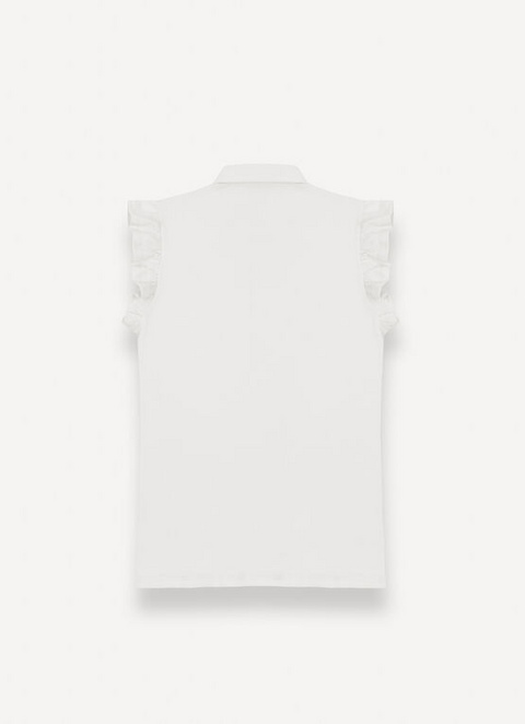 Ženska polo majica iz mehke raztegljive bombažne piqué tkanine. Rokavi so okrašeni z naborki, ki oblačilu dodajo pridih ženstvenosti.