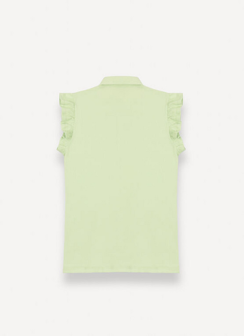 Ženska polo majica iz mehke raztegljive bombažne piqué tkanine. Rokavi so okrašeni z naborki, ki oblačilu dodajo pridih ženstvenosti.
