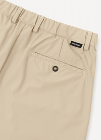 Udobne moške hlače z elastičnim zadnjim delom pasu, izdelane iz super mat tehnične tkanine, odporne na gube in enostavne za vzdrževanje. Popolne so za popotnike, saj ohranjajo brezhiben videz, kar jih naredi praktičen dodatek v kovčku. Vsestranski kos, ki združuje eleganco in športni občutek.