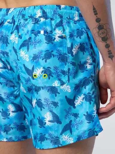 Popolnoma objemite svojo ljubezen do oceana s temi izrazitimi plavalnimi kratkimi hlačami. V čast naši zavezanosti k pozitivnim korakom za planet so ti kovčki narejeni iz Repreve: inovativnega vlakna, proizvedenega iz recikliranih plastičnih steklenic. Oblikovani s potiskom na temo morja po vsej površini imajo klasičen našitek North Sails na nogi za značilen pridih.