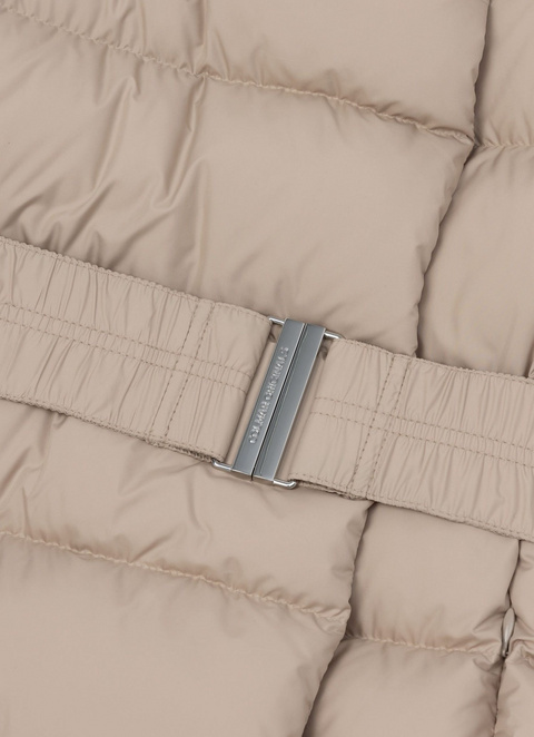Ta elegantna ženska brezrokavna puhasta jakna srednje dolžine je izdelana iz mehke tkanine z mat videzom in vodoodbojno obdelavo, ki zagotavlja zaščito pred rahlim dežjem. Polnjena je z naravnim puhom, kar zagotavlja odlično toploto. Glavne značilnosti tega sodobnega in nevsakdanjega kosa so širok, ovitek vrat in elastičen pas, ki poudari pas. Vsestranska in udobna je idealna v kombinaciji z enim od puloverjev ali trenirk iz kolekcije.