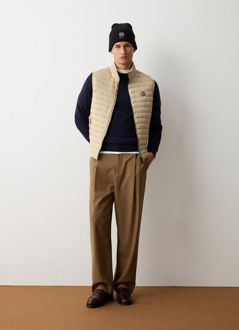 Moška jakna brez rokavov, podložena z lahkim naravnim puhom in izdelana iz super lahkega, mat in recikliranega blaga. Vodoodbojna obdelava. Ikonično in praktično oblačilo, ki ga morate imeti v svoji garderobi. Na voljo v novih odtenkih bo popoln zaveznik za spopadanje z jesenjo ali za nošenje pod plaščem.
