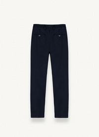 Moške hlače iz mehkega in trpežnega raztegljivega bombažnega satena, barvane po konfekcijskem postopku. Chino model, udoben in sproščen, je odlična alternativa klasičnim kavbojkam. S šivi za izboljšanje prileganja ta kos zagotavlja sproščen videz, zahvaljujoč poševnim žepom na strani in zadnjim žepom z znamko Colmar Originals, ki se zapirajo s Colmar Originals gumbom.