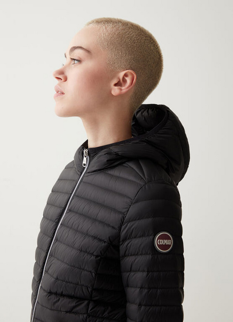 Ženska jakna s fiksno kapuco, izdelana iz vodoodbojne ultralahke tkanine in podložena z lahkim naravnim puhom. Priročni in praktični stranski žepi, ujemajoči se elastični robovi na manšetah, spodnjem delu in kapuci ter rahlo oprijet pas. Ti detajli naredijo oblačilo ženstveno.