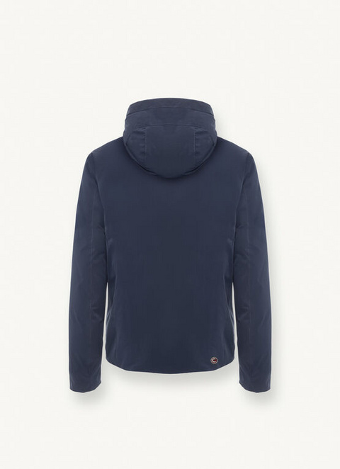 Moška jakna, dvostranska s fiksno kapuco, izdelana na zunanji strani iz raztegljivega mat blaga z vodoodbojno in nepremočljivo obdelavo (5.000 mm vodnega stolpca), na notranji strani pa iz blaga neobičajne konstrukcije, ki ne potrebuje šivanja. Podloga iz naravnega perja. Tehnične značilnosti in strogost zunanjosti se dobro prepletajo z ustvarjalnostjo notranjosti in ustvarjajo športno oblačilo glamuroznega videza. Udoben in praktičen, ima nastavljivo kapuco zahvaljujoč vrvici, ki vam omogoča prilagajanje širine.