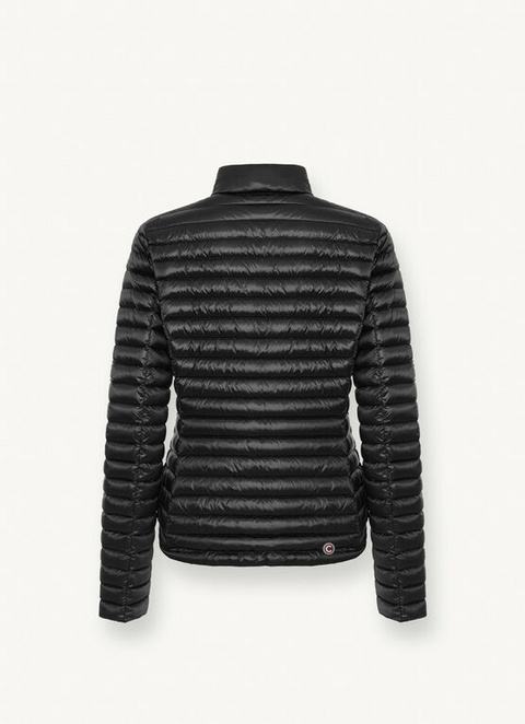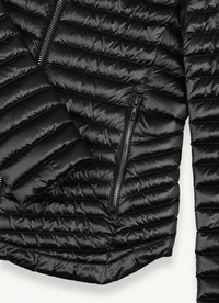Ženska jakna, podložena z naravnim puhom, izdelana iz reciklirane tkanine z mavričnim učinkom in vodoodporno obdelavo. Ravni prešiti zgornji del je spuščen in ustvarja diagonalni motiv v pasu, ki podčrta in poudari silhueto. Svetle barve v jesenski paleti za to 100-gramsko jakno.