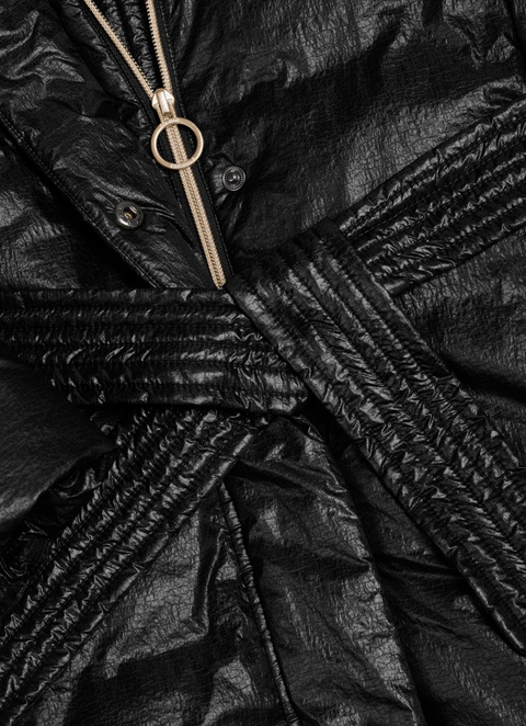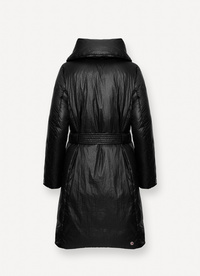 Njena dolžina do kolen zagotavlja odlično toplotno izolacijo, medtem ko lahka, a topla polnilna plast poskrbi za udobje v najhladnejših razmerah. Sprednja zadrga z zlatim detajlom in gumbi dodajo pridih elegance. Idealna za urbano uporabo ali zimska potovanja, ta jakna združuje stil in praktičnost.