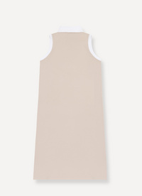 Ženska obleka brez rokavov v polo slogu, izdelana iz mehkega in raztegljivega bombažnega piquéja. Obleka ima kontrasten bel ovratnik in robove na izrezih za roke, kar ji daje klasičen in eleganten videz. Zapiranje z gumbi na zgornjem delu in logotip Colmar Originals na ovratniku poudarjata prefinjenost. Popolna za sproščene poletne dni ali casual priložnosti.