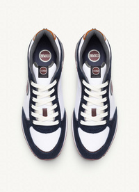 Prefinjen moški tekaški čevelj TRAVIS PLUS HERITAGE je simbol Colmarjeve oblikovalske, estetske in konceptualne dediščine. Umazano bel teksturiran najlonski zgornji del je poudarjen z vložki iz semiša in elementi, ki odražajo barve ikoničnega logotipa. Prekrivanje različnih tekstur dodaja temu modelu dinamiko in volumen, obogaten z usnjenim detajlom na zadnjem ovratniku.