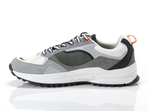 Zgornji del iz tehnične tkanine in vložki iz semiša: Mešanica materialov za dinamičen in sofisticiran videz.