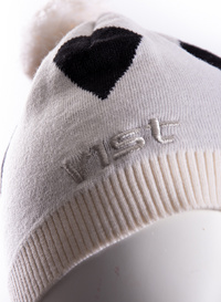 Ženska smučarska kapa z majhnim pompom cofkom. ZUNANJI MATERIAL:  50% volna 50% akril  NOTRANJOST: 100% poliester