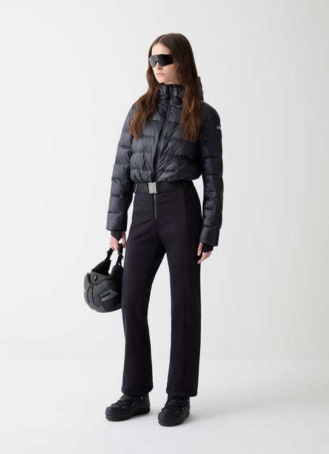 Ta ženski smučarski kombinezon prinaša sijaj na smučišča s hlačami, ki se popolnoma prilegajo telesu in so izdelane iz toplega, vodoodpornega (vodni stolpec 5.000 mm) ter zračnega softshell materiala. Zgornji del, ki je podložen s puhom in izdelan iz svetleče tkanine s posebno prevleko, zagotavlja visoko vodoodpornost (10.000 mm) in odlično zračnost (10.000 g/m2/24 ur). Odlična za tiste, ki želijo na smučišču ostati elegantni.
