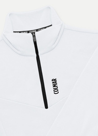 Ženska termalna majica s polovično zadrgo je izdelana iz gladkega raztegljivega flisa na zunanjosti in krtačenega na notranji strani. Geometrični, ostri kosi izboljšajo silhueto, ne da bi žrtvovali harmonijo. Udobje in praktičnost za tehnično oblačilo, namenjeno smučarjem, ki se pri športu ne odrečejo ženstvenosti.